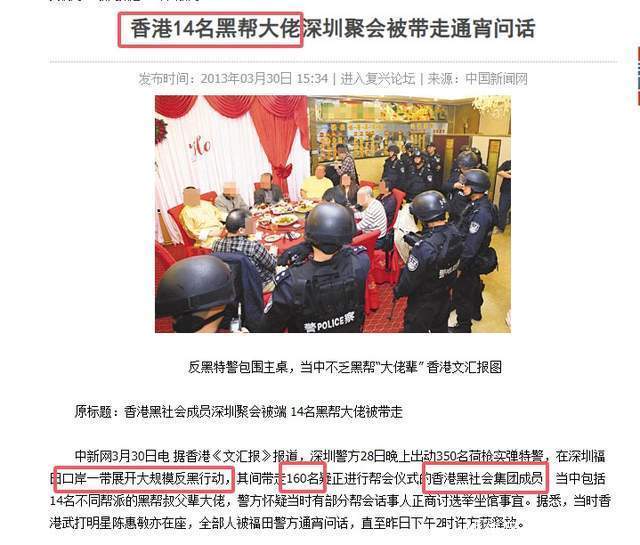 就拿现实中来说,陈慧敏,大家应该熟悉吧?当年香港有名的黑社会大佬,权势滔天的那种,杀人都带不眨眼的,甚至连日本山口组都不敢得罪人家,结果,我刷到年的一条新闻,他来深圳这边聚了个会,被福田区公安局给全部带走了,陈慧敏是好说歹说,人家才被放出来,这些黑社会在国内就是一次公安局的扫黑除恶专项打击而已。